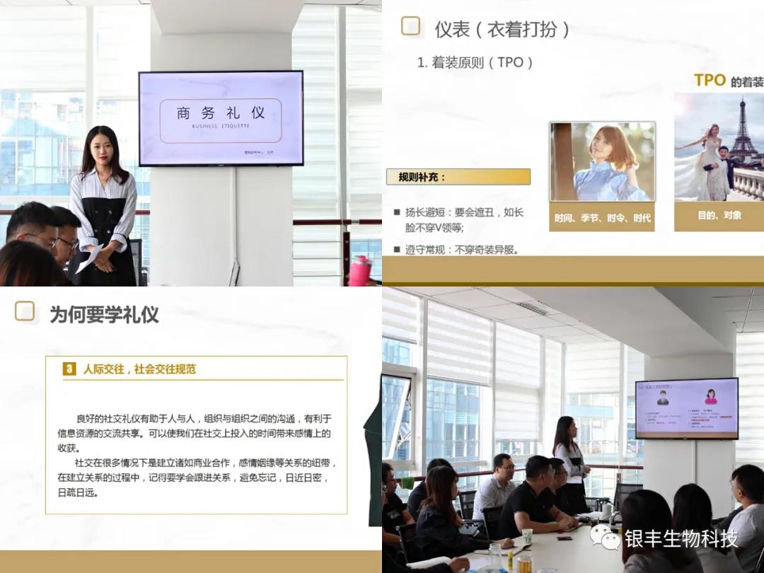 中國是禮儀之邦,作為一名優秀的營銷經理,商務禮儀是營銷經理在待人接物、商務談判中必須具備的基本素質。營銷服務中心王嬌經理帶來的《商務禮儀》正好對題。給銀豐各位營銷經理帶來了一次商務禮節的培訓。課程PPT的內容翔實豐富,通過介紹職業人士在穿著、待人接物、接聽電話時應當注意的細節,彌補了我們在業務談判當中所忽略的內容。