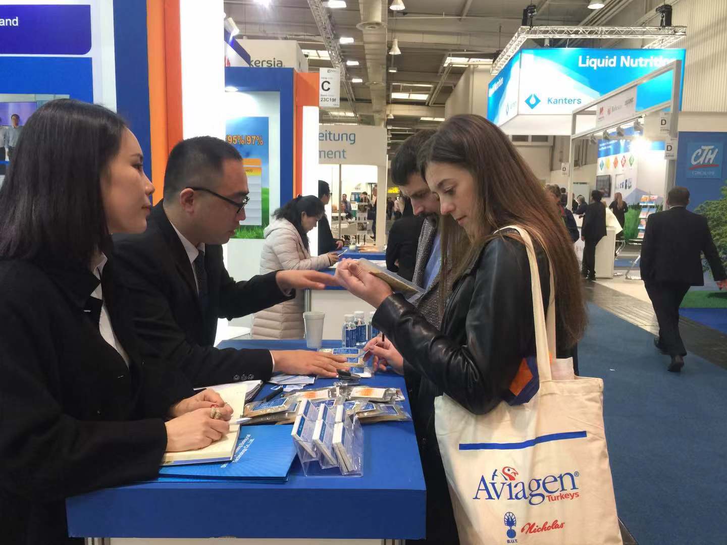 世界頂級畜牧展覽盛會EuroTier在德國漢諾威落下帷幕,它吸引了來自全球62個國家2000余家展商和16萬專業人士前來參展。山東銀豐自十月份參加越南畜牧展后,再次走出國門參加在德國舉辦的此次國際性畜牧展覽盛會。歐盟氯化膽堿標準是世界上最嚴格最苛刻的標準,銀豐作為新入市企業就積極參加此次盛會,正是對“銀豐只生產符合歐盟準入標準的氯化膽堿”核心理念的最好例證。