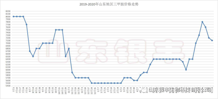 9月中旬以來,氯化膽堿依然以高位運行趨勢為主,在某些客戶的實單上面,廠商為了爭取訂單報價略有松動,但是下探幅度有限,近一個月來的這段時間氯化膽堿的運行態勢與山東銀豐上一期(9月15日)市場資訊文章預判的“短期內氯化膽堿將以高位盤整的趨勢運行,不排除有小幅弱勢震蕩的可能”完全吻合。國慶中秋雙節已過,經過假期近十天訂單的消化和廠家的自我調整,山東銀豐認為:受成本支撐,十一假期之后短線來看氯化膽堿仍然保持高位震蕩的運行趨勢,中線來看隨著上游原料三甲胺緊缺程度得到緩解,氯化膽堿廠家生產負荷不斷提升,不排除氯化膽堿有窄幅走弱的可能,但是在原料價格沒有大幅波動的情況下,預計下行空間比較有限。為什么會做出這樣的判斷呢?筆者將從以下幾個方面來闡述分析。